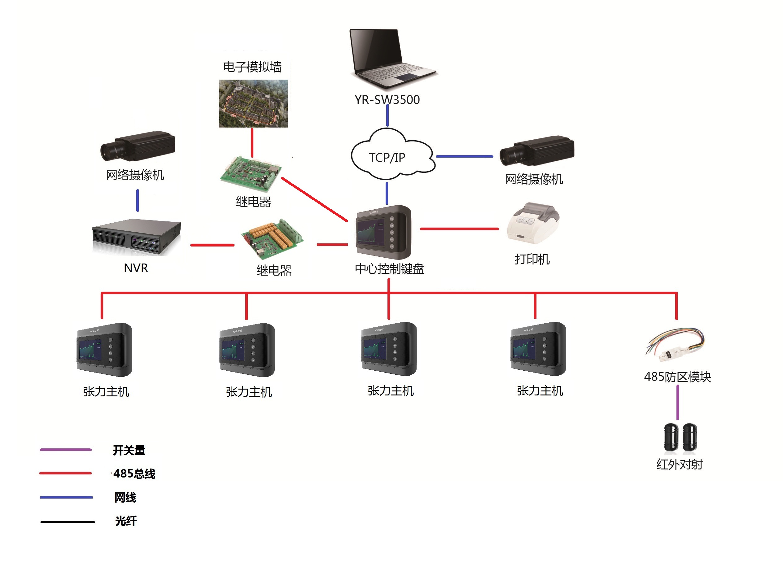 普通型張力圍欄主機(jī)+中心控制鍵盤/網(wǎng)絡(luò)單機(jī)控制軟件+網(wǎng)絡(luò)平臺(tái)控制軟件SW4000