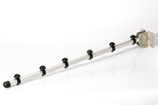 玻璃纖維,尺寸Φ12.5*850mm,實(shí)心桿體,主要用于支撐合金線,用中間桿扇形底座固定在圍墻上,中間桿安裝于中間桿扇形底座,平均3-5 米一根。