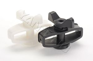 聚乙烯復(fù)合材料、耐腐蝕、強(qiáng)度高,用于收緊合金線的作用。中間收緊器是一直掛在前端圍欄上的,安裝合金絲時,把合金絲從中間緊線器側(cè)面的圓孔穿入,再對準(zhǔn)并穿過其中間的中縫,最后通過另一側(cè)面的圓孔穿出。